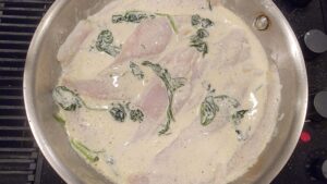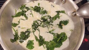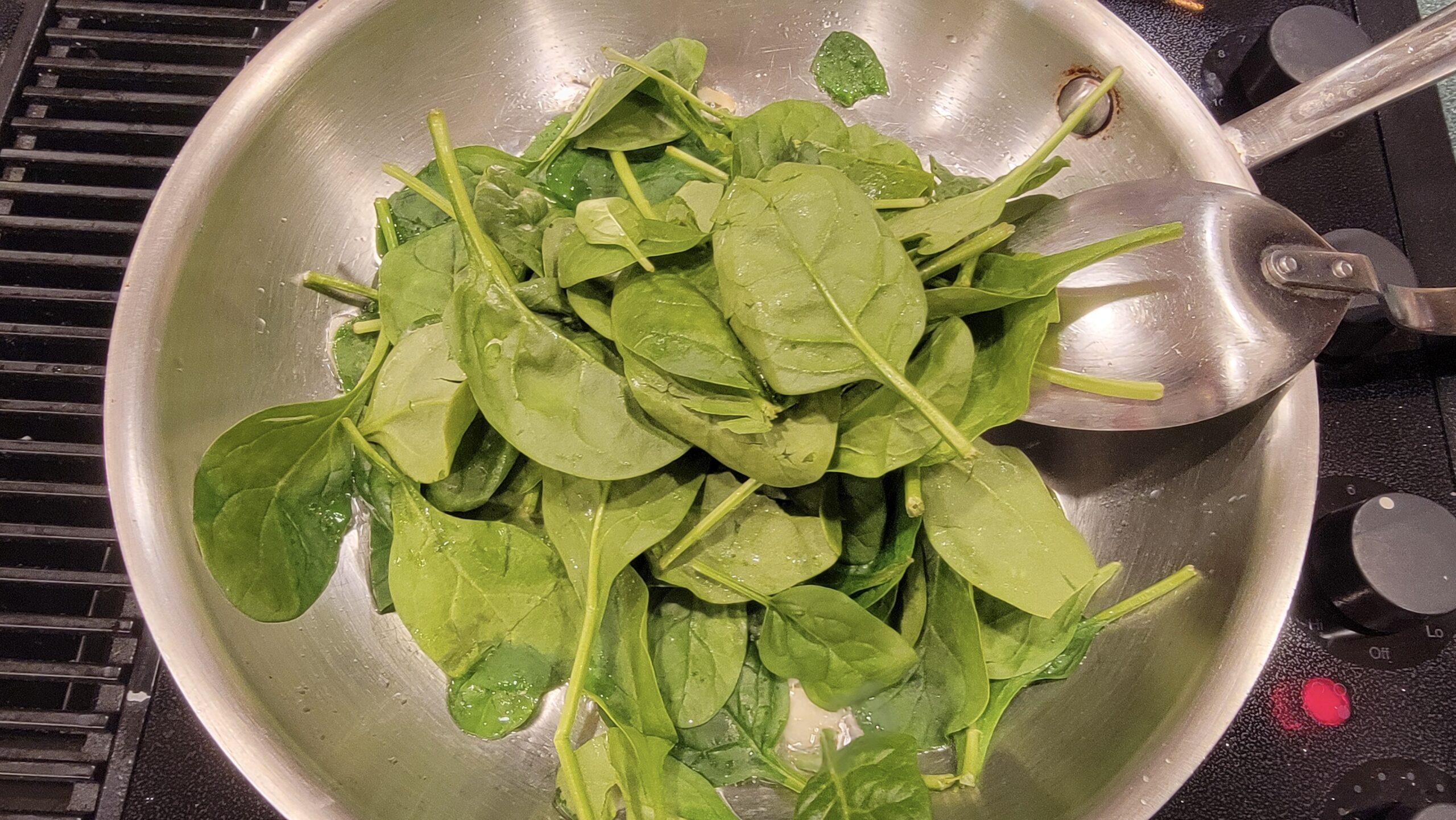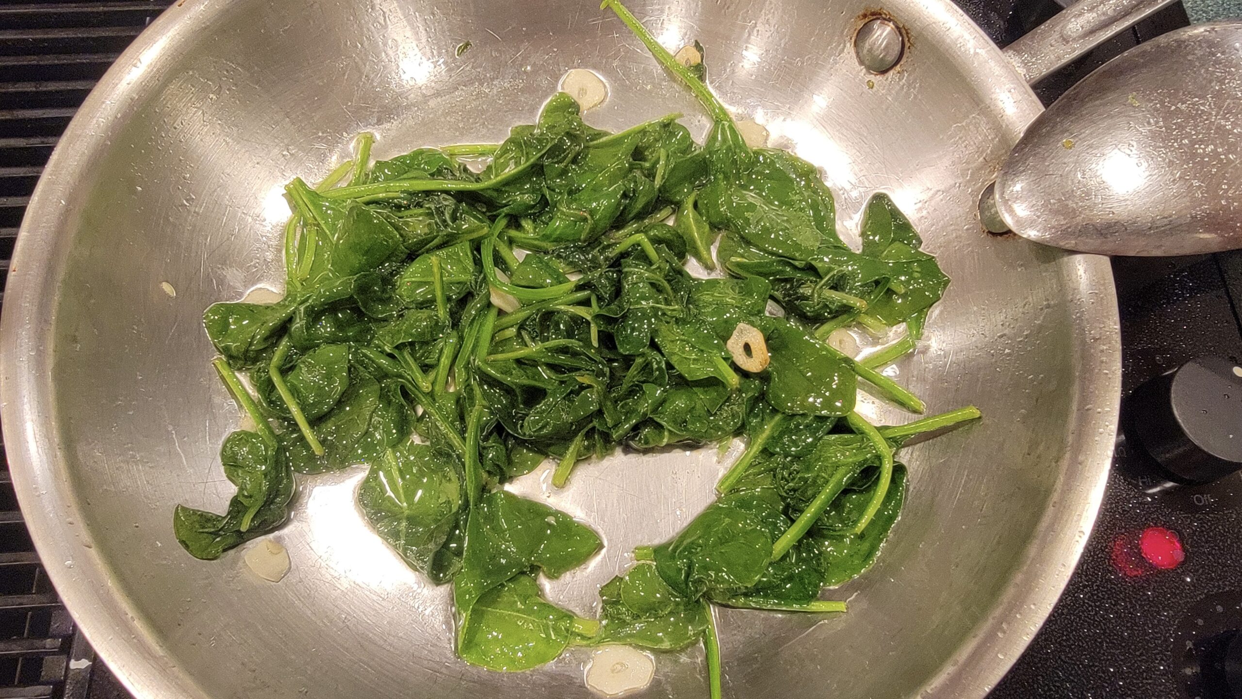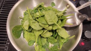 • Add spinach, mix with garlic, cook together till spinach wilted ( about 1-2 minutes)