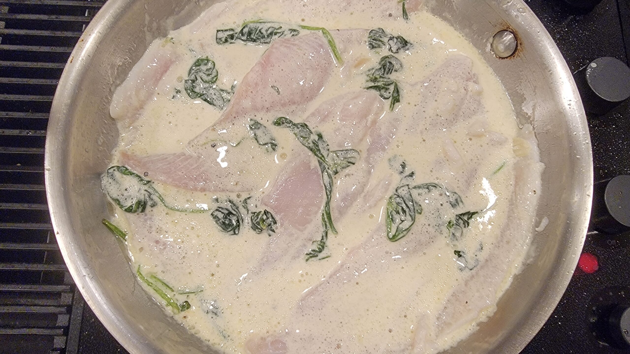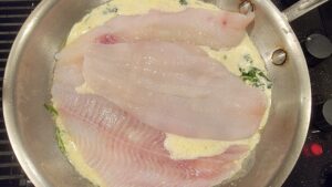 • Place your fish on top of the source, reduce heat and cover skillet with the lid.