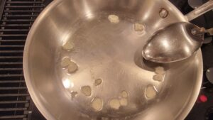 • Add about 1 tbsp of olive oil onto the skillet and put on medium low heat
